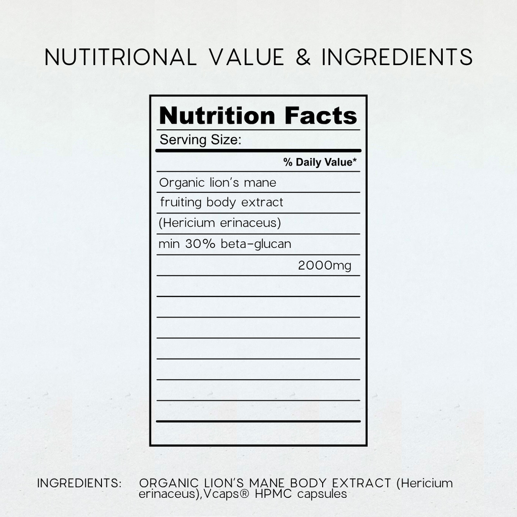 Organic Lion’s Mane Capsules - Improves Focus, Memory & Mental Clarity