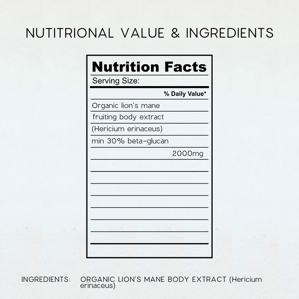 100% Organic Lion's Mane Extract Powder (Organic Hericium erinaceus fruiting body).